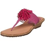 A playful fringe pompom dresses up this leather thong sandal from Kid Express. Fun, fashionable, and easy to wear, it's a sweet addition to her summer wardrobe. This sandal is finished with a low cork wedge heel and a rubber grip sole.