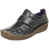 Comfort and appealing style are key in the Jenny Mary Jane form Groundhog. Stitching accents and raised seams detail a roomy, rounded toe, while a natural button provides earthy contrast. Wear it with capris, skirts, and shorts, this leather lovely also features a gentle wedge heel for flattering lift you can wear everyday. |